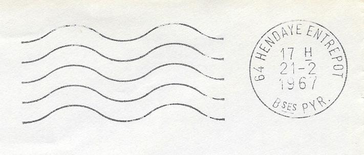 Oblitération mécanique de type secap 5LO, non codée, signalée de 1957 à 1966, Bses Pyrénées