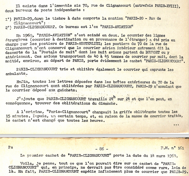 Il semble que dès 1939, ce centre de tri se soit déplacé au bureau du 70 de la rue de Clignancourt Paris XVIII annexe 1. Des griffes Paris XVIII annexe 1 sont apposées sur les étiquettes de recommandation.