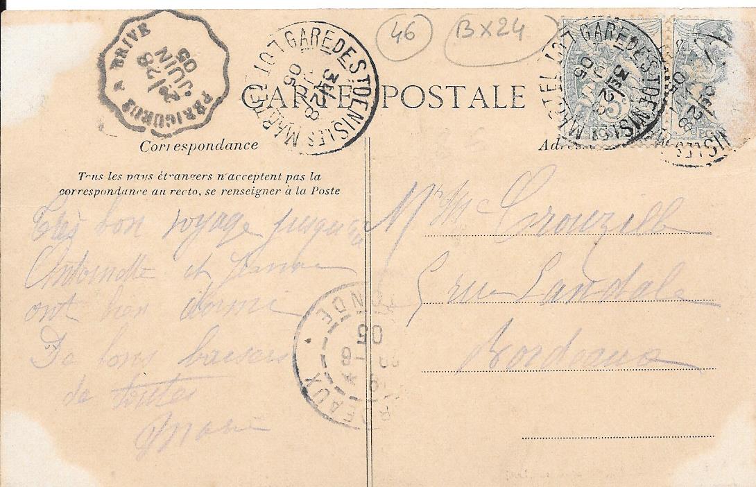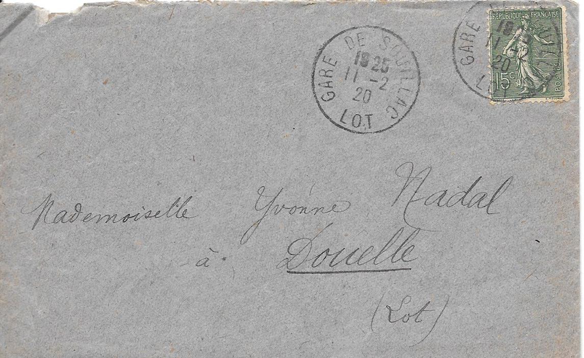 Gare de Souillac mise en service en 1889 : Bureau-gare de Souillac, vu jusque 1924. Le bureau-gare de Souillac a utilisé comme oblitération manuelle, deux types: 18, 1884. Devient un entrepôt signalé ouvert en 1954 et fermeture le 01/03/1962.