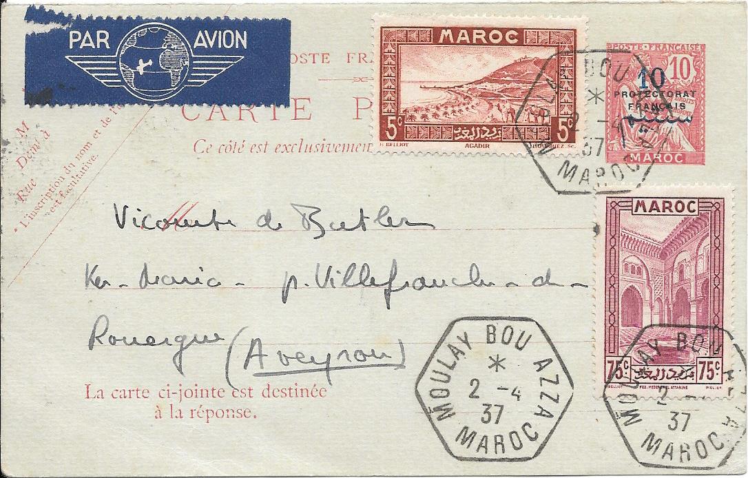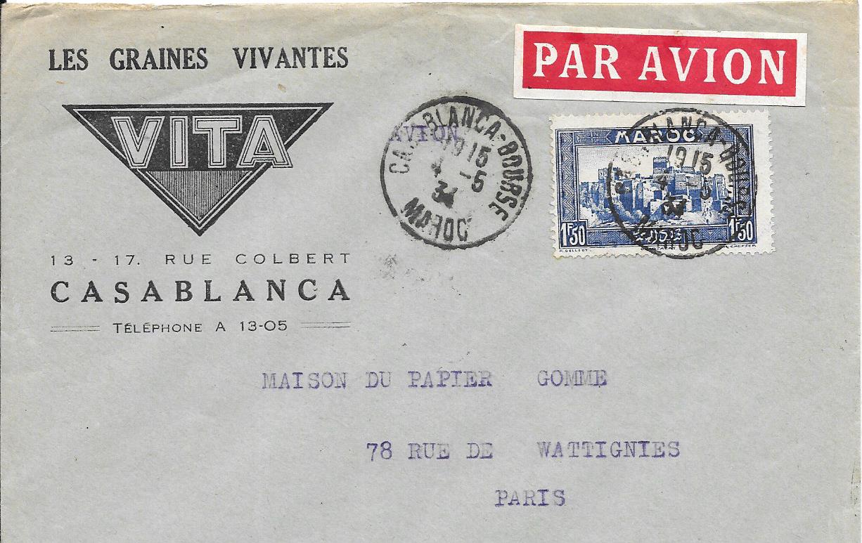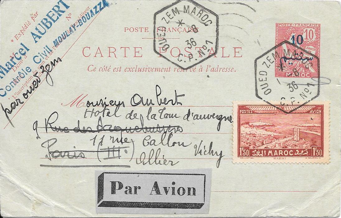 En 1946, le trafic des correspondances ordinaires (plis n’excédant pas 20g) entre le Maroc vers la France est estimé à 80 000 000 d’unités. Ces plis sont acheminés sans surtaxe par voie aérienne.