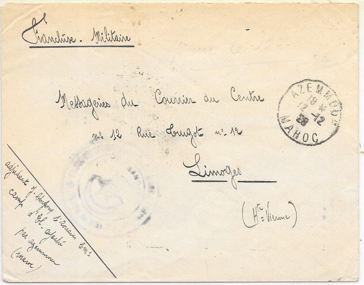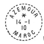 Administration: circonscription et bureau d’état civil d’Azemmour et sa municipalité, C.C. 14600 habitants dont 85 européens. Les PTT se trouvaient place du marché.