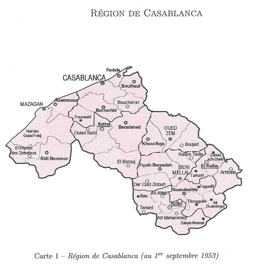 trois régions entre 1941 et 1947 avant d’être définitivement réintroduit dans la région de Casablanca en 1948. Pendant la seconde guerre mondiale, il est apparu un manque d’effectifs de gradés du corps des contrôleurs. Ces gradés ont été mutés sur le front en France (1939/40) et ils se sont retrouvés soit prisonniers soit tombés au champs d’honneur. Après l’armistice, pour les libérables, certains sont retournés au Maroc et ils ont repris leurs fonctions. Pour pallier à ce manque d’effectif, la Résidence a rattaché des parties de territoire à d’autres régions administratives.