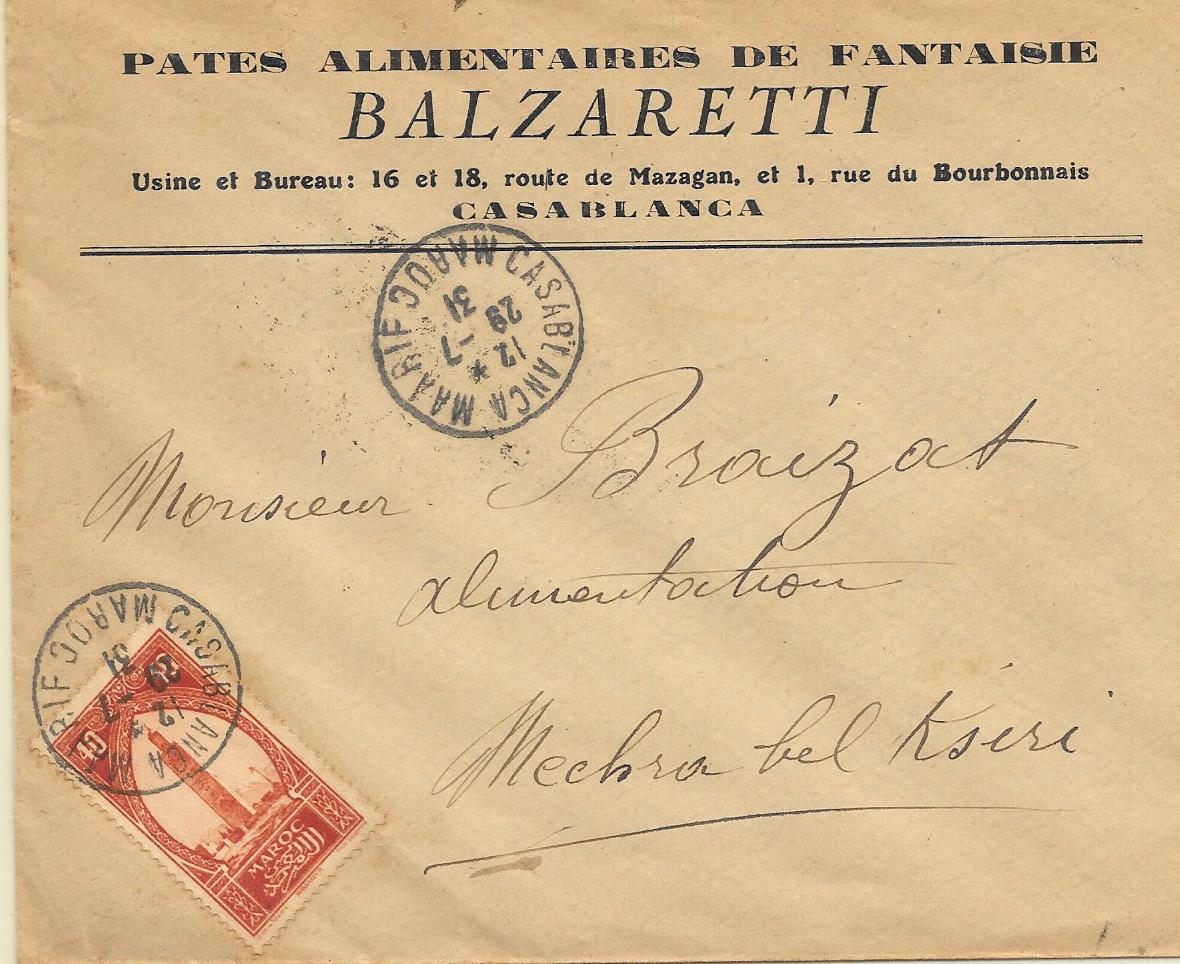 Casablanca rue du commandant Provost, bureau de la médina, oblitération vue en 1919, bureau fermé le 01/03/1920.